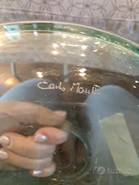 Vaso vetro soffiato originale di Murano del maestro Carlo Moretti firmato. Leggeri segni di usura dovuti al tempo.