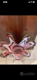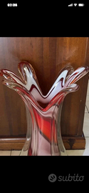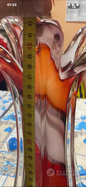 Questo vaso esemplifica la tecnica Sommerso, in cui strati di vetro colorato sono immersi nel vetro trasparente, creando una profondità visiva affascinante. Originario di Murano, Italia, il vetro Sommerso è rinomato per la sua maestria artigianale e i suoi colori vivaci. I collezionisti apprezzano questi vasi per i loro design unici, la complessiva del processo di soffiatura del vetro e la loro incarnazione dell'estetica del moderno di metà secolo.peso 5 chili , altezza 42€0400 larghezza 14 Categoria