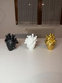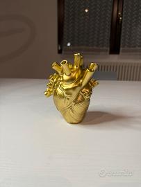Vendo vaso decorativo unico a forma di cuore anatomico, di colore oro, un pezzo di design che non passerà inosservato nel tuo arredamento! Perfetto per chi cerca un tocco di arte e originalità in casa.