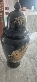 Vaso asiatico con pavone e fiori, vaso in porcellana asiatica, vaso Art Deco' asiatico magnifico con coperchio arte vintage. Rifiniture dorate (lumeggiature in oro) che contornano le figure.