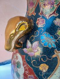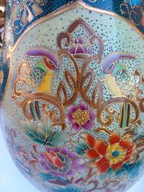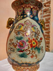 Splendido vaso ornamentale d'impatto, alto ben 45 cm, perfetto come pezzo d'arredo centrale. Il vaso è una pregiata lavorazione in stile Satsuma, ricchissima di dettagli fatti a mano che lo rendono unico.