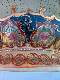 Lavorazione in Rilievo (Moriage): I decori non sono solo dipinti, ma presentano piccoli puntini e dettagli in rilievo percepibili al tatto, che donano tridimensionalità.