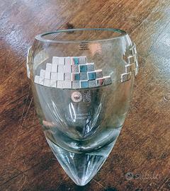 Vaso Ottaviani anni 80 in vetro con placche in argento 925.