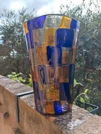 vaso Pezzato by Fulvio Bianconi per Venini. Un sublime esempio di grande maestria dei mastri vetrai di Murano. Firma autentica vedi foto. ho messo foto fatte di giorno e di sera.
