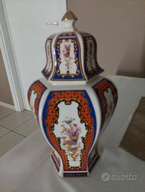 vendo bellissimo vaso in porcellana con coperchio prodotto dall'azienda bassano e gatti ispirazione orientale anni 50-60 altezza 29 cm articolo da collezione perfetto senza difetti o crepe!!