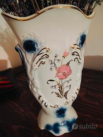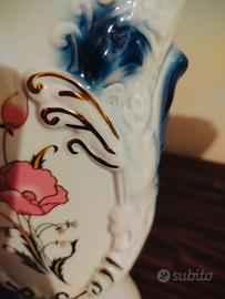 Vaso fine porcellana Made in Romania ARPO. Alto 24cm . come nuovo non presenta nessuna screpolatura . Colore bianco con bordature d oro e delicato fiore rosa