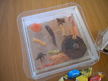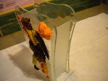 Vaso in vetro decorato con "natura morta" in rilievo + porta dolcetti/caramelle/oggetti sempre in vetro decorato con "natura morta" in rilievo.