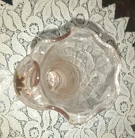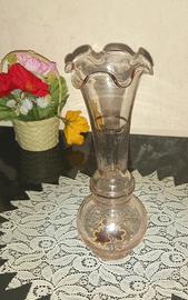 Vaso porta fiori 💐 piccolino periodo anni vintage/ 70/ 80/ in vetro trasparente con effetto puntigliato e trasparente, sul rosa viola antico, particolare decorazione e filamenti dorati, rifiniture a mano artigianale mostrato bene in foto evidenziate nessuna rottura solo invisibili diversità mancante del tempo stesso, normale ma nulla di rilevante o che si possa vedere una volta messo sul mobile anche senza i fiori 💐 farà la sua scena bellissimo! possibilità di ritiro a mano , spese di spedizione a parte, bello stato di conservazione imballaggio e scatola verrà entrambe addattati.
