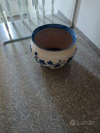 vaso porta pianta altezza cm 40 foro alto cm.50 foro interno cm.40 ceramica bianca decori blu