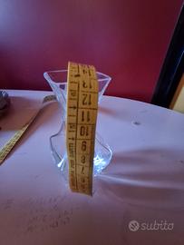 Vaso portafiori in vetro. Leggermente sbeccato in un angolo, come da foto. Mai utilizzato. Cm. 13.