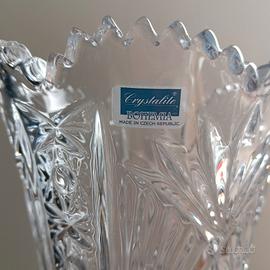 Vaso portafiori in cristallo Bohem, finemente lavorato. dimensioni: cm 27,5 altezza e diametro massimo cm. 14.