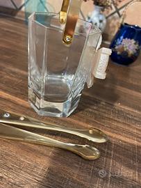 Belissimo vaso,stile “principessa” con pinze.Portaghiaccio in cristallo,colore oro con diamanti e pinze oro con due diamanti.Prodotto italia.