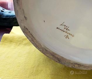 Vaso portaombrelli in porcellana Capodimonte anni ’50 dipinto a mano. Oggetto d’epoca in porcellana di grande popolarità napoletana. Rilievi di scene mitologiche tridimensionali risalenti al XVII-XVIII secolo con decorazioni di putti e motivi floreali in stile barocco. Altezza 59 cm, larghezza 36 cm, profondità 24 cm, peso 8 kg. In buono stato con lievi segni di naturale invecchiamento. Firmato sul fondo nr 1030 Capodimonte Italia. Ritiro a domicilio Cusano Milanino, no drop-off. Euro 70