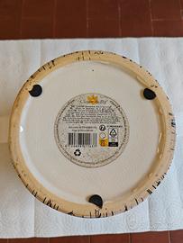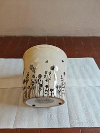 Vendo vaso / portavaso in ceramica smaltata color beige, con motivi floreali neri e piccoli dettagli decorativi, quali api e cuori Design rustico e botanico, ideale per ambienti interni ed esterni riparati Dimensioni: 21x21x20 [cm]