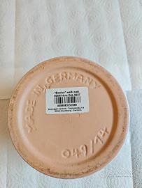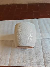 Vendo vaso / portavaso in ceramica, colore bianco opaco Il prodotto fa parte della linea "Boston", realizzati dall'azienda Soendgen Keramik Design tondo e leggermente bombato, con finiture a rilievo su tutta la superficie esterna Ideale per ambienti interni ed esterni riparati Dimensioni: - diametro 14cm