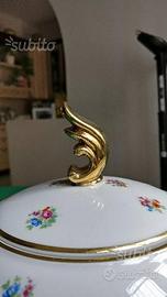 Vendo, unicamente per puro realizzo, FAVOLOSO vaso con coperchio (Potiche) porcellana tedesca Bavaria d'epoca, con romantici decori floreali (rose) dai colori tenui e delicati.