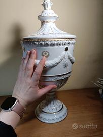 vaso dipinto a mano porcellana dettagli dorati con coperchio zona Gianicolense -Roma