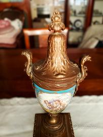 Vaso / potige sevre. Epoca Napoleone III in bronzo e porcellana raffigurante putti. H 36. Contattare Roberto 3389087106.