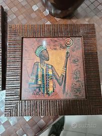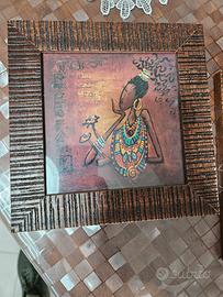 vendo singolarmente o unico blocco n.1 vaso in legno intarsato + n.2 quadretti cm 20 stile etnico