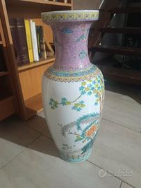 Questo oggetto è un vaso in porcellana cinese, tipicamente decorato con motivi floreali e figure, spesso risalente al XX secolo.