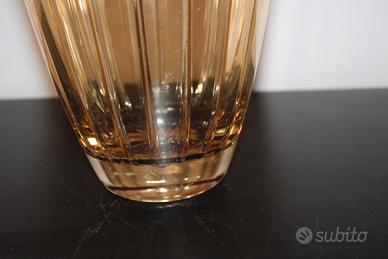 Materiale: vetro decorato con dettagli dorati (oro, filo oro, lustro), spessori e rigature verticali che creano giochi di luce e riflessi eleganti.