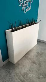 Vendo elegante vaso rettangolare da pavimento, in finitura bianca con texture, perfetto per arredare ingressi, uffici o soggiorni. Design moderno e salvaspazio, ideale per piante vere o artificiali. Dimensioni: 160 x 100 x 25cm Condizioni ottime.