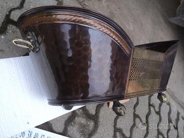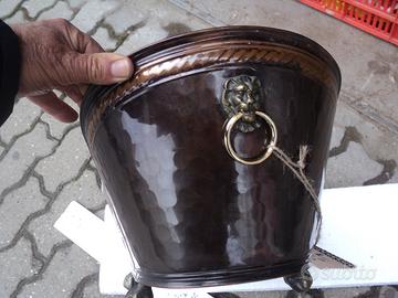 vaso ornamentale in ottone di forma rettangolare in ottone di due sfumature usato per inserire vasi con piante di lun 65 alt 23 prof 24 con lettere di riferimento PL