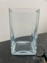 Moderno vaso rettangolare a base quadrata, utilizzabile come portafiori, porta candela o per originali composizioni con acqua, fiori e tea light.