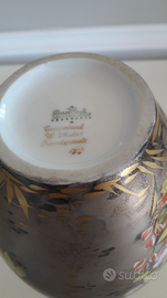 Maestoso e ricco vaso antico in porcellana rosenthal. Effetto madreperlato su tutta la superficie con minuziose decorazioni fatte a mano in oro su entrambi i lati del vaso. Perfetto in ogni sua parte. Epoca risalente dal marchio 1950 circa. Le misure sono cm 34 di altezza ,una circonferenza alla parte panciuta di cm 46 circa e un diametro di cm 6 di apertura bocca. La richiesta è di 130 euro