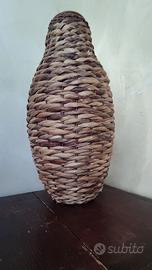 Vaso rustico in giacinto d'acqua intrecciato a mano, vaso decorativo da interni per composizioni floreali.. Dimensioni: alto 45 cm, diametro massimo 20 cm, base diametro 10 cm, bocca vaso 7 cm circa.. Presenta alcune imperfezioni legati all'età...