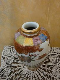 VASO IN PORCELLANA GIAPPONESE SATSUMA DI FORMA A BALAUSTRO, DECORATO CON PAESAGGI GIAPPONESI, FIRMATI KAIZAN.