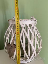 Vaso con porta candela in stile shabby chic da decorazione con cuore in legno possibilità di appenderla o da terra