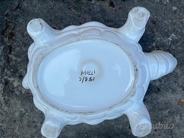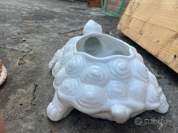 Vaso tartaruga in ceramica bianca, anni 70/80 Non presenta sbeccature misura (coda/testa comprese) 40 cm (zampa/zampa ) 26cm (sommita testa/terra) 13cm