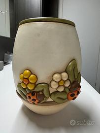 Ceramica decorata a mano con fiori e coccinelle in rilievo.