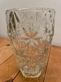 Vaso lavorato trasparente. diametro cm.12 parte alta e cm.7,5 parte bassa. Altezza cm.20
