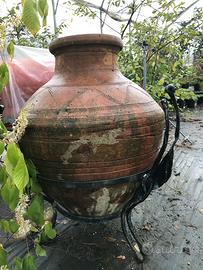 Orci provenienti dalla Turchia, rivestiti di ramina per lo stoccaggio di olii e cereali, risalenti al periodo 1500-1700 con tre anse e piedistalli in ferro battuto. Vasi H.96 diametro 76.
