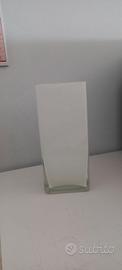 Vaso in vetro bianco dalla forma rettangolare. dimensioni altezza cm 23 x larghezza cm 10 x profondità cm 7 cm.
