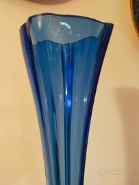 Vaso in vetro a colonna, blu cobalto , lavorato a mano (irregolare nel piede e nel calice). Altezza cm. 110, impegno base cm.25/27. Potrebbe essere di Murano ( proviene dal Veneto). Stupendo, luminoso, in qualsiasi angolo della casa arreda da solo! Valuto spedizione solo previo accordi.