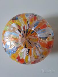 Il vetro dei Dogi Prezioso vaso di design in vetro di Murano motivo Millefiori, fitto di murrine multicolori con predominanza del giallo e dell'arancio e avventurina oro.