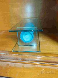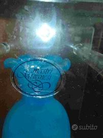 Vendesi vaso in Vetro di Murano, azzurro in cornice di vetro trasparente, molto particolare, altezza cm 29,5, larghezza cm 12,5