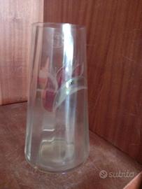 vendo vaso vetro trasparente con decorazione fiore rosa