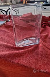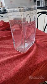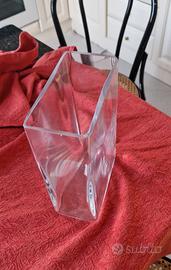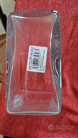 Vaso di vetro pesante di forma rettangolare, originale e robusto per fiori recisi o come contenitore di conchiglie o altri oggetti da collezione.