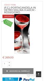 Vaso Portacandele della ditta Argenesi di Padova in vetro rosso e Argento. misura 40 cm completo di scatola e tagliando garanzia prodotto certificato.