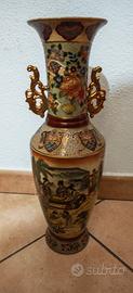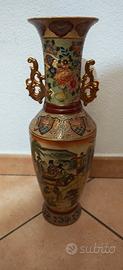 Vaso orientale vintage decorativo 45 cm altezza e larghezza 18cm – dettagli raffinati Elegante vaso orientale vintage ricco di dettagli con scene figurative e decorazioni floreali. Perfetto come elemento d’arredo per salotto, ingresso o studio. Buone condizioni generali; presente una piccola sbeccatura sul bordo (visibile in foto), non invasiva. Oggetto scenografico e di grande effetto. accetto offerte