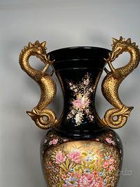 Vaso Vintage Decorativo in Ceramica con Dipinti Floreali e Cavallucci Marini in oro.