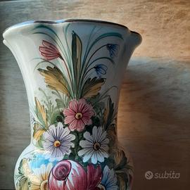 Vaso vintage made in Italy in ceramica smaltata dipinta a mano con fiori colorati. Altezza circa 32 cm, bocca 20 cm