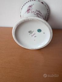 Ottimo prodotto Bianco con fiori rosa e filo dorato alle due estremità. Altezza 20cm , l’apertura é di 16,5 cm,