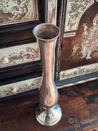 PREZZO NON TRATTABILE. Grazioso ed elegante vaso vintage portafiori, placcato semplice uso decorativo, epoca anni '60, placcato argento. Presente alla base la sigla "PNS", ovvero "Plated Nickel Silver", cioè Nickel placcato argento. Presente ossidazione, lucidare a piacere. Ottime condizioni, direi perfetto! Misure: 25 cm di altezza, diametro della base 6,5 cm, diametro punta 3,5 cm. Guardate gli altri miei articoli e non esitate a farmi domande o richiedere ulteriori fotografie. Non leggete quanto segue. #teiera #zuppiera #cornice #fogliaoro #english #england #sheffield #elegance #vintage #tavola #chic #tavolachic #peltro #epoca #1900 #lusso #lattiera #ceramica #antico #antique #vintage #argent #ferro #maiolica #silverplated #cristallo #quadro #1800 #legno #lavorazioneasbalzo #Sheffield #France #England #intaglio #altorilievo #Cina #orientale #design #anni70 #porcellana #limoges #Murano #Mazzega #Abatjour #comodino #Liberty #artnouveau #rame #ottone #lotto #zuccheriera #Ginori #Doccia #Richardginori #tazzine #cestino #ebano #campana #alpacca #silverjewellery #silver925 #silvervintage #oliera #saliera #pepiera #artdeco #Russia #russian #bambù #Lavoratti #vassoio #fiorentino #Firenze #opalina #gioiello #oro #gold #jürst #Berlin #germany #villeroyboch #capodimonte #ghianda #wedgwood #jasperware #cervo #scarabeo #fiori #paiolo #antoniacampi #fiori #sottobicchiere #thun #macabo #cusanomilanino #aldotura #macaboitaly #capodimonte #mirror #specchio #Brandani #buddha #buddhastatue #buddhasculpture #calamaio #smalto #Bassano #plateau #turtle #curiosity #curiositè #cabinet #taxidermie