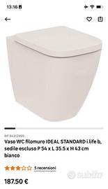 Vaso WC con copriwater nuovo, comprato e non posato per errate misure del sopralluogo. Lo vendiamo a metà prezzo, vedere in tal senso le foto del catalogo di acquisto.