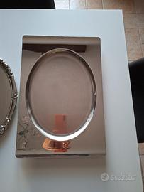 set di vassoi in acciaio. - Un vassoio rettangolare con bordo rialzato misure 30x45 - Un vassoio ovale con decorazioni sul bordo 35x28